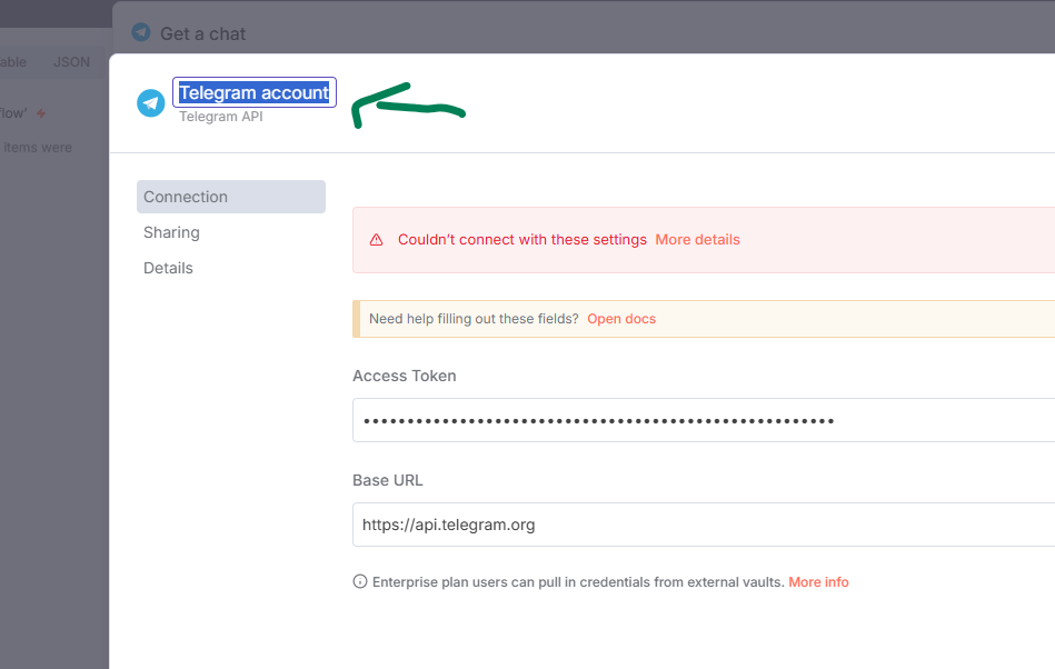 i.e. i have workflows which are connected with many telegram-bots, so in my credentials dashboard i have “Telegram Account 1” to “Telegram Account 6”.