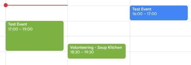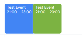 “Your personal event “Test Event” has been created for today at 2pm, lasting 2 hours. You will receive a reminder 10 minutes before the event. A confirmation email has also been sent to you.”