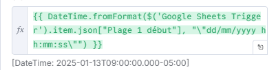 The strange part: when I use a hardcoded ISO date string, it works perfectly. But when I use the exact same string, coming from a Google Sheets Trigger, it fails — even though the output appears identical.