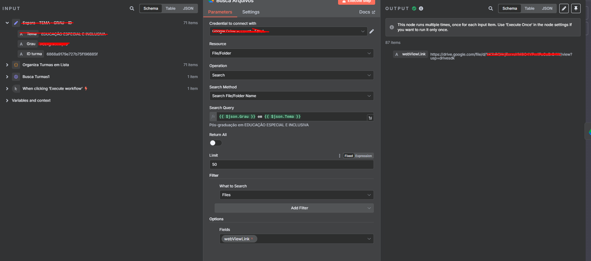 (Disregard the undefined webhook values. Isolated the drive node for demonstration purposes)