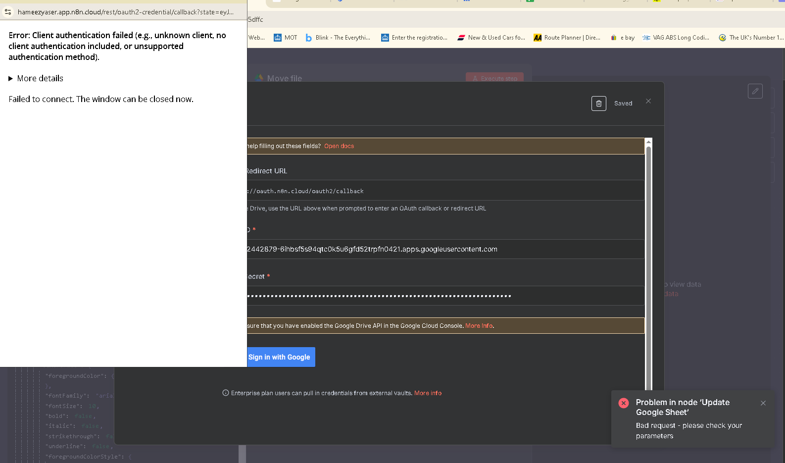 I would double triple check the client id and a secret, make sure not to copy extra spaces or other whitespaces when you copy these values from GCP console to n8n.