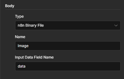 The problem is I haven’t been able to figure out how to get the image passed to my server as a binary file. I have the n8n temporary file location in the id like: