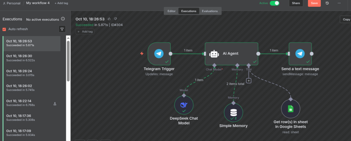 my Agent isn’t Appending Rows into the Google Sheet, the name of the sheet is correct. On the execution, the tool changes to the “Get Rows” instead of the “Append New Rows”.