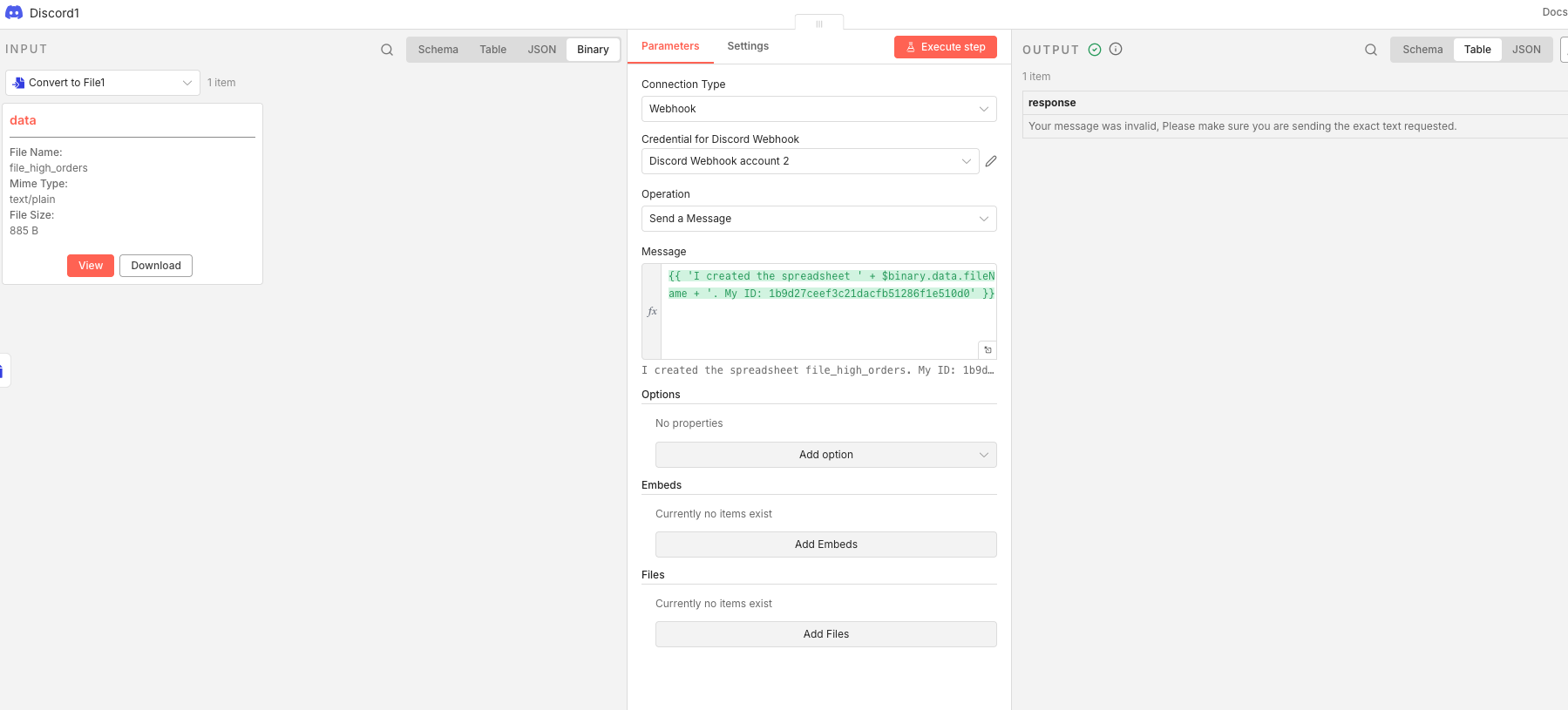 {{ ‘I sent the file using email with the label ID ‘ + $json.id + ‘. My ID: 1b9d27ceef3c21dacfb51286f1e510d0’ }}