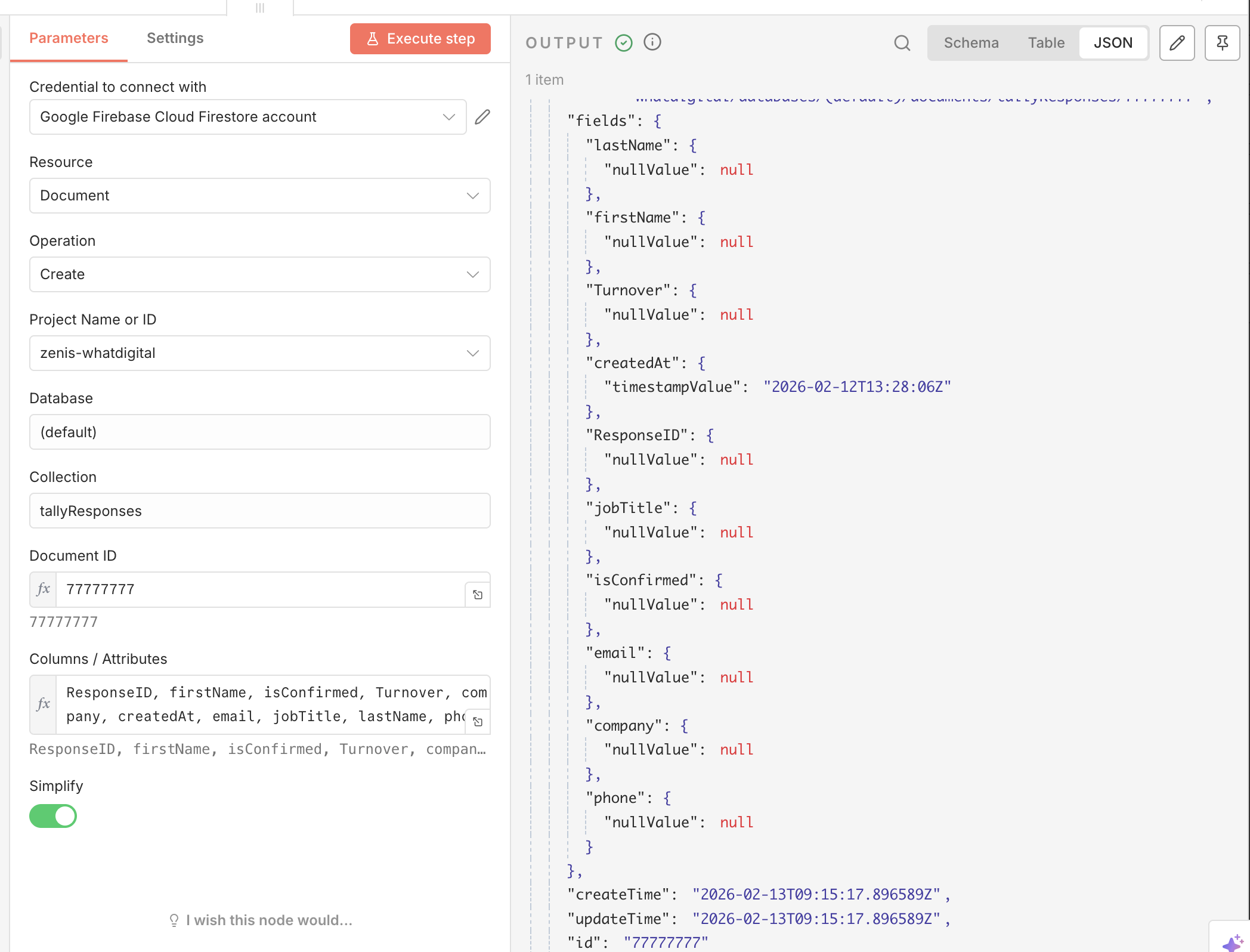 I’m using n8n v2.7.4 with the Google Firebase Firestore node v1.1.