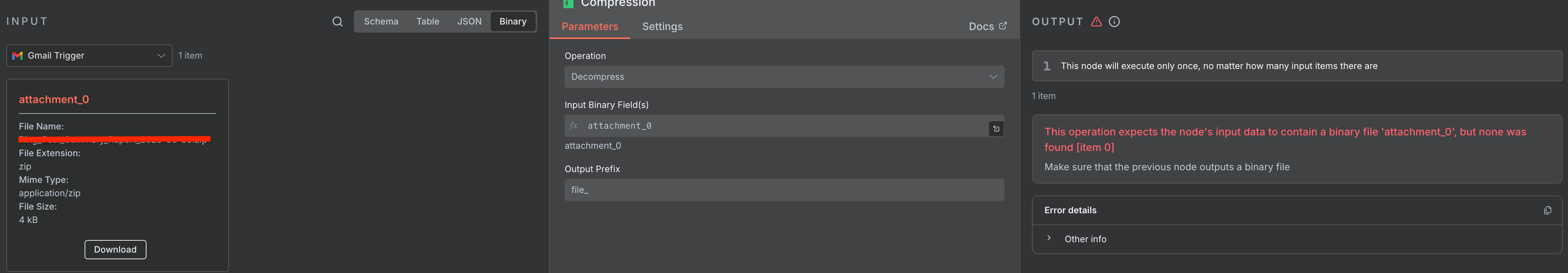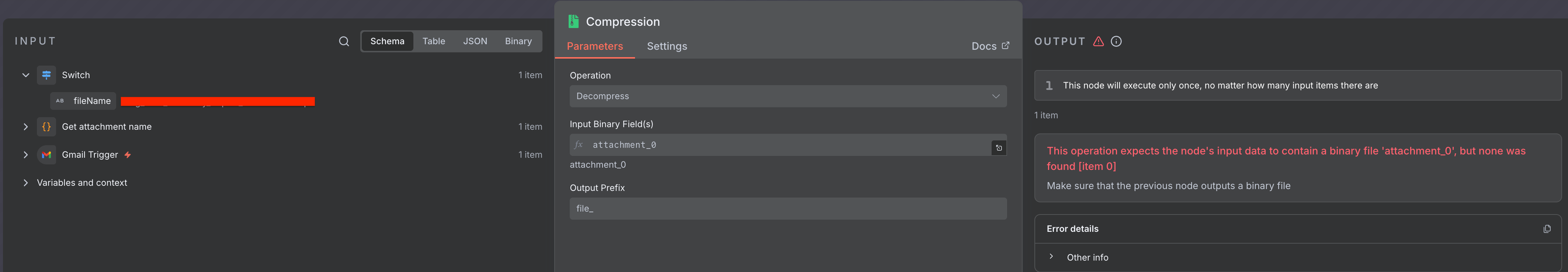 I have ingested an email with an attachment, and after validating it’s the one I need, I want to decompress it. I read some posts and it should be farely easy, but I’m not sure what am I missing.