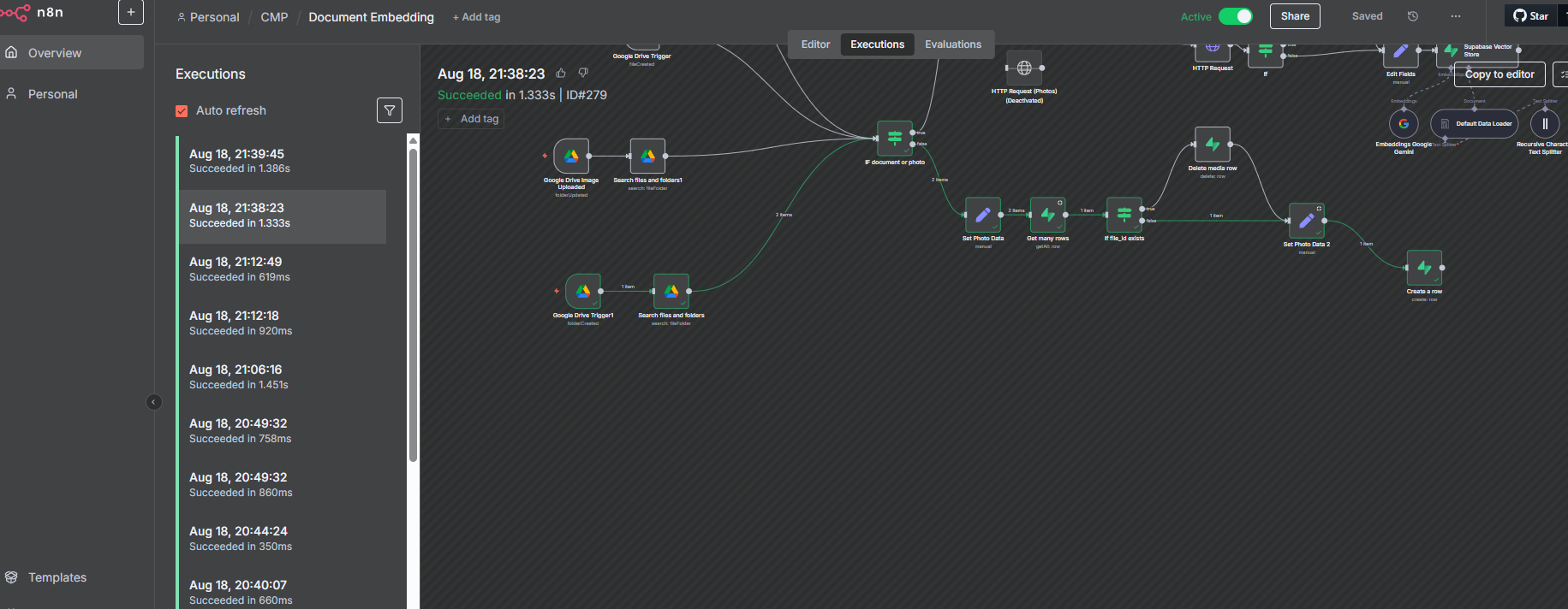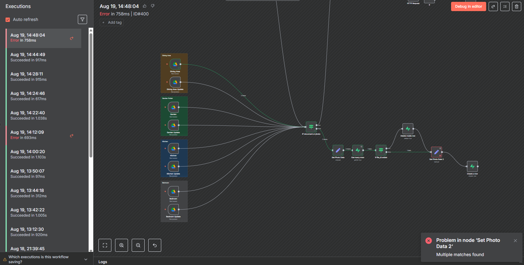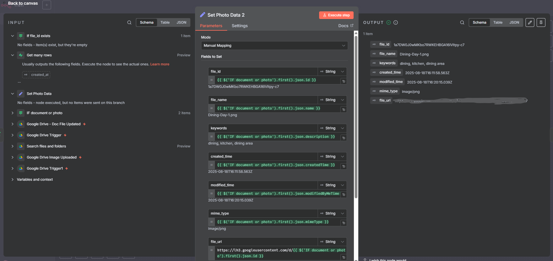 My workflow starts with a google drive trigger, it watches a folder for new uploads of photos then it gets processed from getting it’s metadata and inserting it’s metadata to a supabase table. My problem is and I can’t figure it out for the life of me is how do I process all the items that was fetched by the trigger? For example I uploaded multiple photos in the folder, how will I process all of it consecutively? My existing workflow only always gets the first item.
