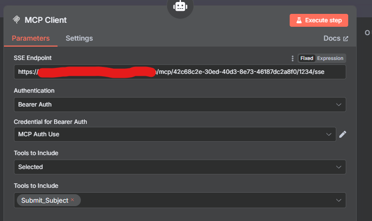 This resolves when I connect to my MCP server from an AI Agent. I can select tools and I’m able to use the MCP server. But I am unable to retrieve my MCP_ID parameter value.