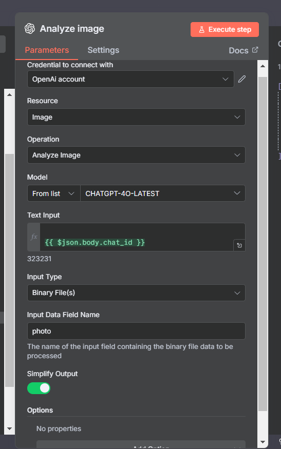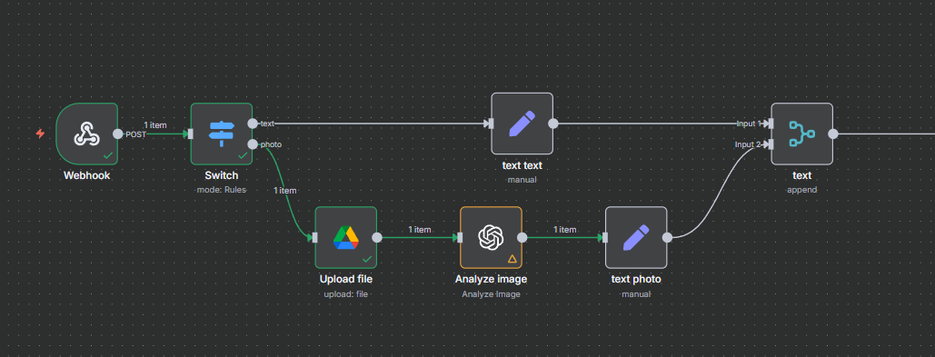 The text format works fine, the agent’s AI memory accepts the session and responds to the message, but there is a problem with images. In my worklfow, after the webhook, there is a switch node that determines the message format. In the photo line the switch node is {{ Object.keys($input.first().binary).length > 0 }} is not empty. Text is {{ $json.body.text }} is not empty. I would set the URL input type in the AI Photo Analysis node, but the images are in binary format. How do I set this up correctly so that the session ID is transmitted correctly to the AI agent?