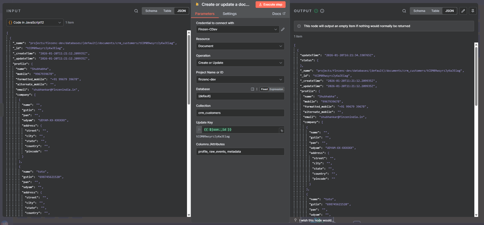 I’m trying to update an existing Firestore document in n8n using the Firestore “Create or Update” (upsert) operation, but instead of updating the existing document, a new document keeps getting created. I am using the service account for authentication.