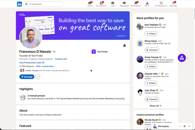 Right-click any LinkedIn profile to open a prefilled sidebar form