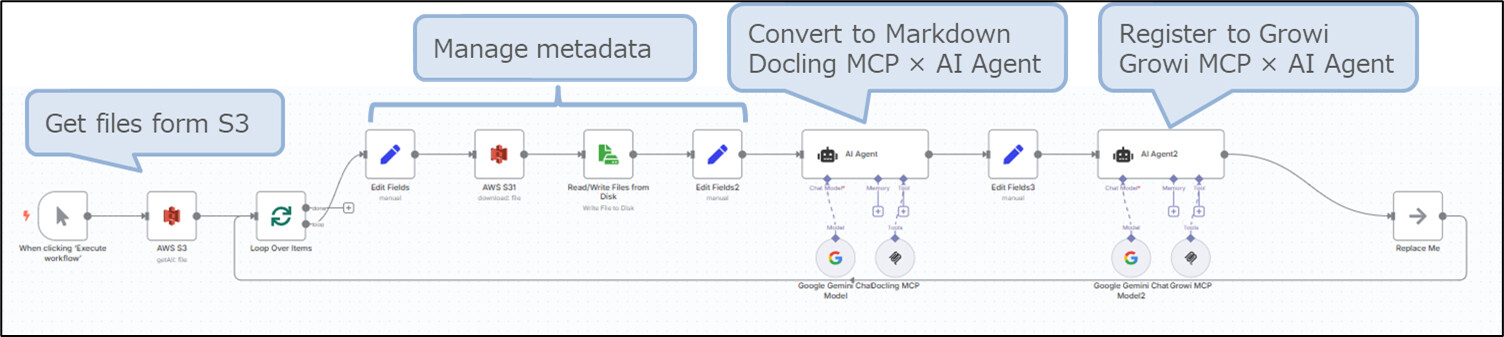 Automated workflow confirmed: Store files in S3 β Convert to Markdown β Save to Growi