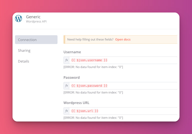 or the Wordpress node so you can create a credential that uses an expression like this…