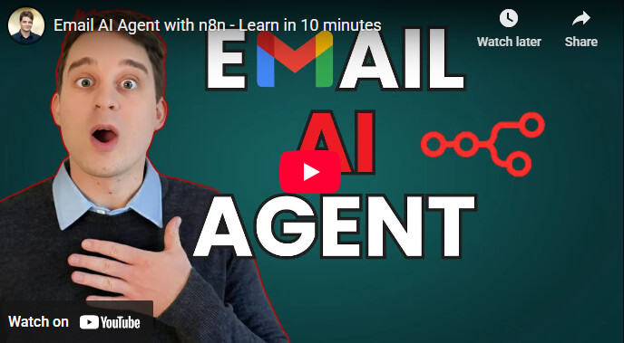 This tutorial demonstrates how to create an AI-powered email management system using n8n workflows. The agent automatically processes incoming emails, categorizes them with appropriate labels, and generates draft responses based on your business information, eliminating hours of manual email handling.