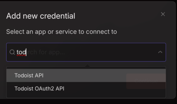 "NodeApiError: Credential with ID \"XXXXXXXXXXXX\" does not exist for type \"todoistOAuth2Api\".",