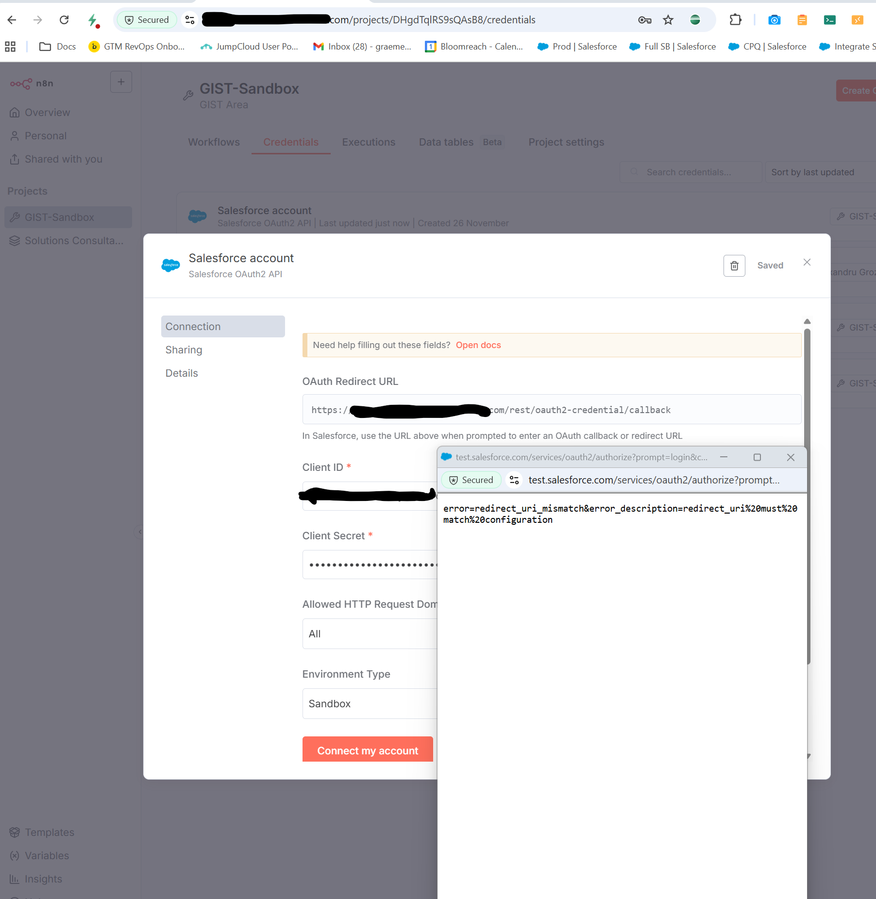 Unable to create credentials (oauth) for salesforce sandbox with custom domain