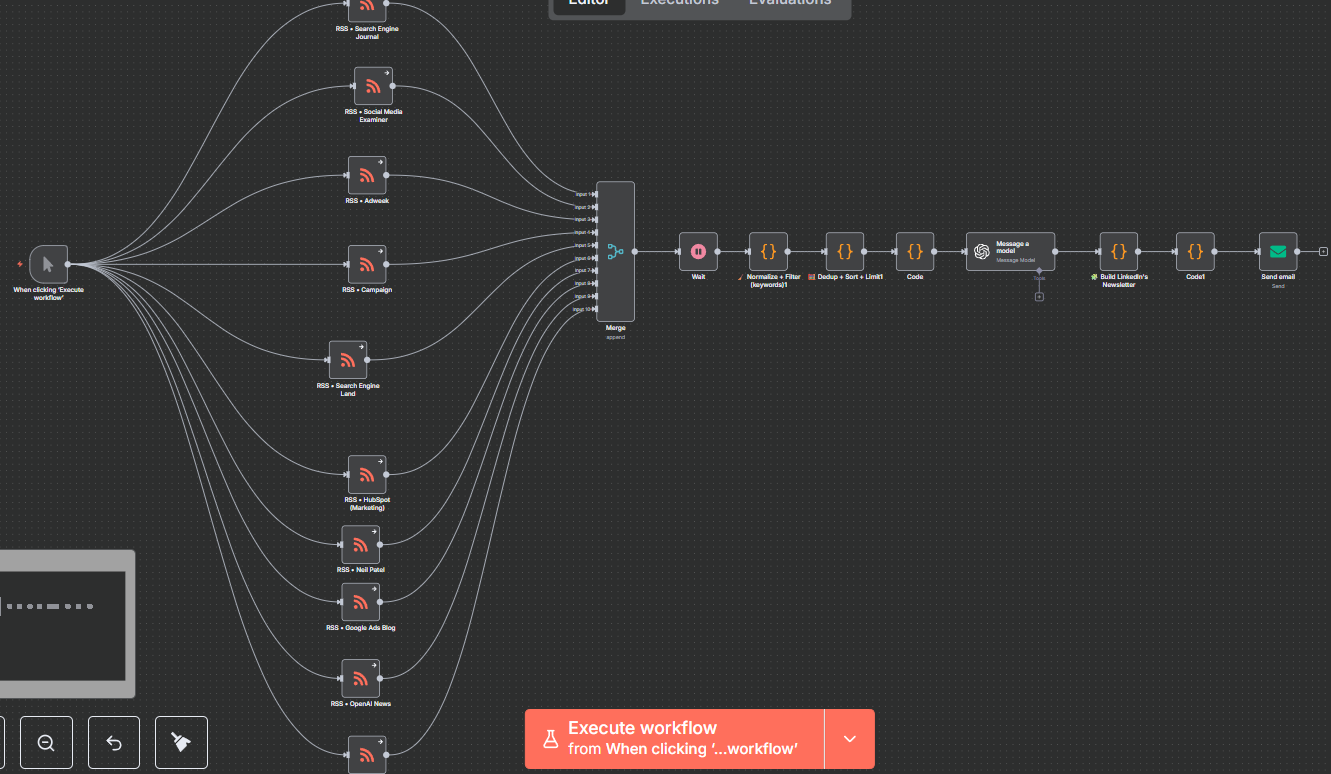 So far I can search for information with RSS Nodes and send an email daily, but haven’t found a way to create a new daily edition from n8n. I have even tried to intercept email in the process and trying throuhg Python, but even so I can’t get it completely and not sure if it’s possible (I don’t know to much about Programming)