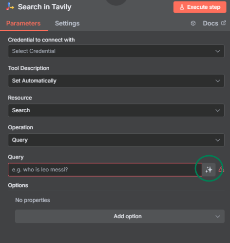 Note: tavily node setting where there’s query text box