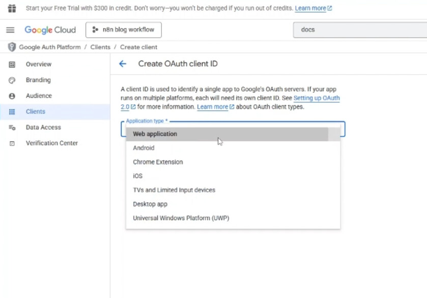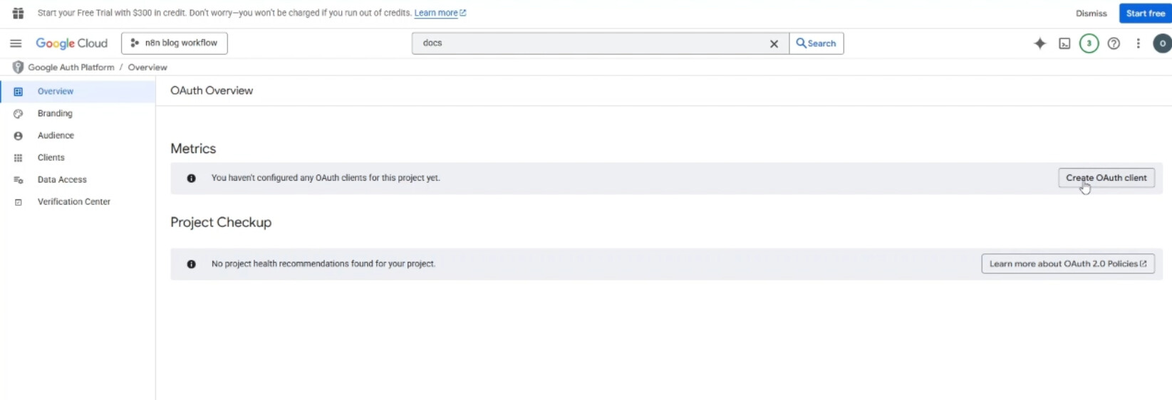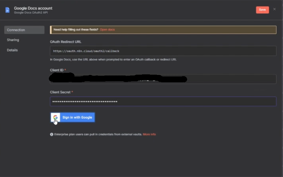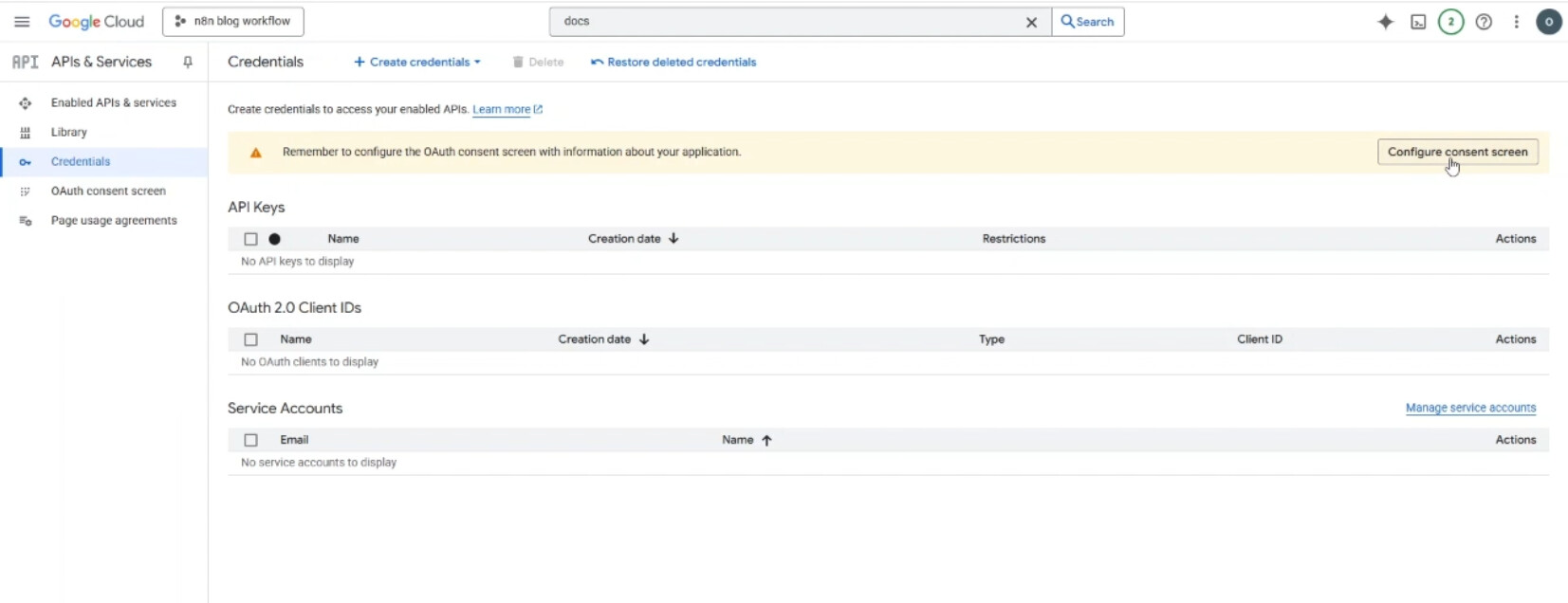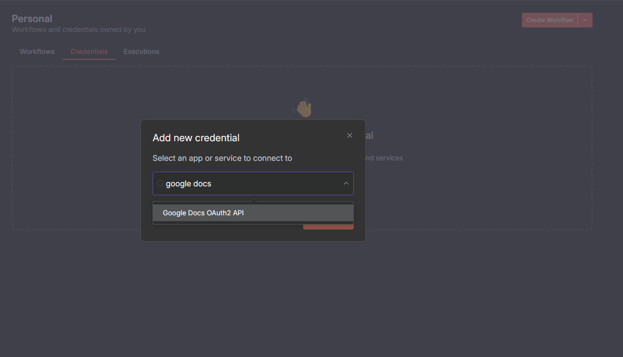 In order to create Google Docs credentials on n8n, you have to follow the following steps: