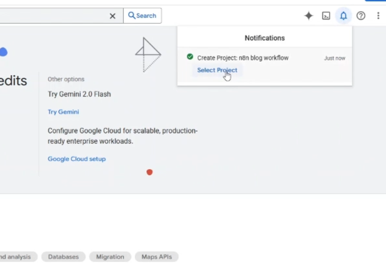then you can see on notifications panel that project is created.