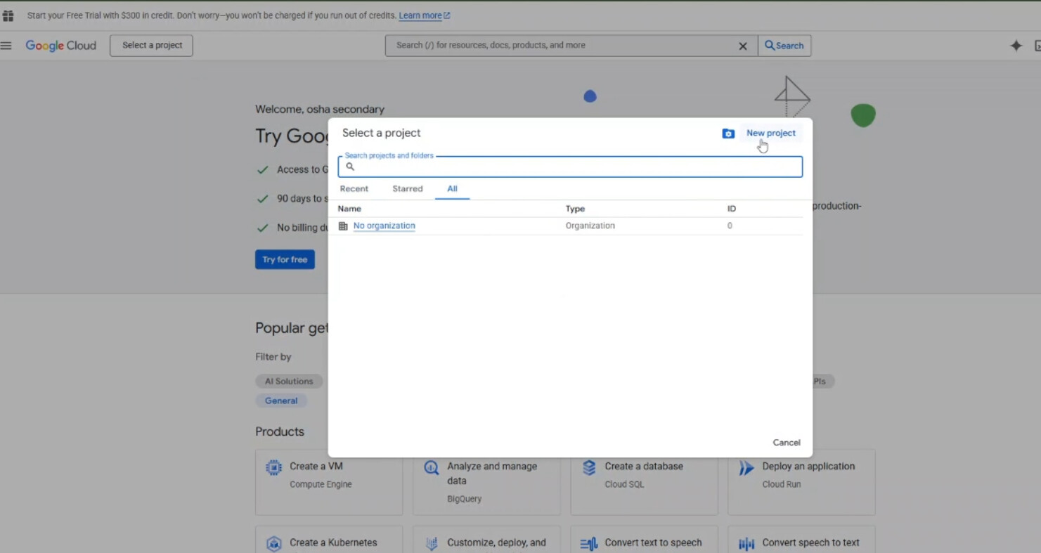 - on the Top left corner you can see a button “Select a Project”, click that