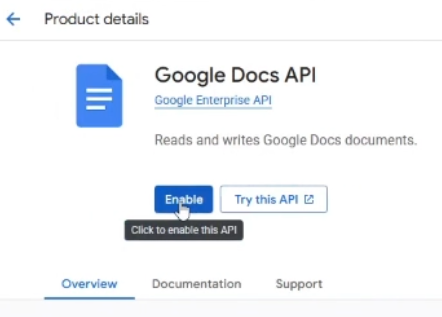 - Select “Google DOCS API” from the search results