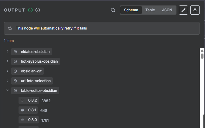 I am using n8n. There i have an http request returns like i shared. It returns the data about the software i follow. name, download, versions, updated … not sure what exactly in there but you can read from the example part i sent.