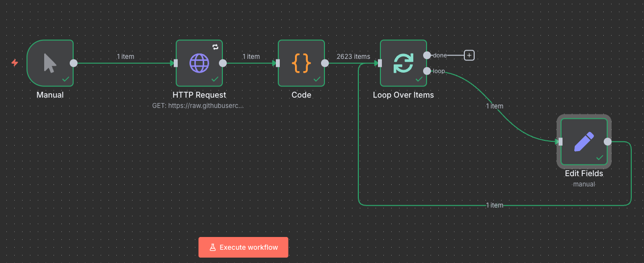 In n8n you don’t actually need a Loop node to process a list if your data is already an array, because nodes iterate items automatically.
