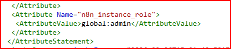 Even if you have groups in AD like owner / admin / member / chatUser, n8n doesn’t understand all those roles via SAML.