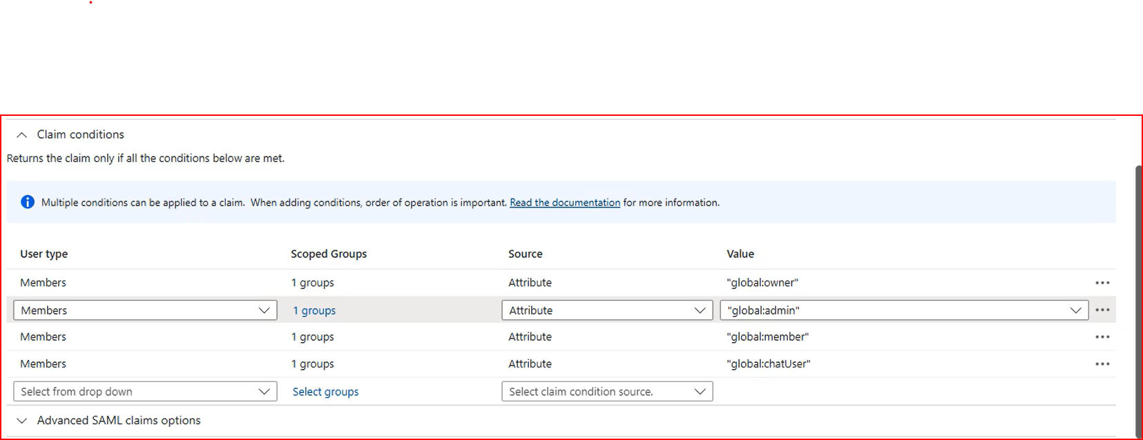I think were almost there. I see the attriubute appear in the saml now.. however the order seems wrong. I happen to be in 2 groups and even though we did top down, it seems to match to admin each time rather than owner. What we doing wrong? see screenshot of the claim