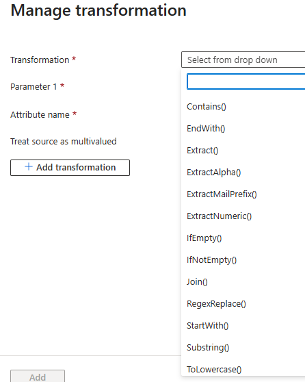 So when we go to add the claim, and add the value, were getting a ‘manage transformation’ screen and we dont know what settings to use for this screen. Then there is attribute list and the ad groups arnt in there… basically this is the step we stuck on. any help describing what you do here would be great. (i’ll upload the screen shots]