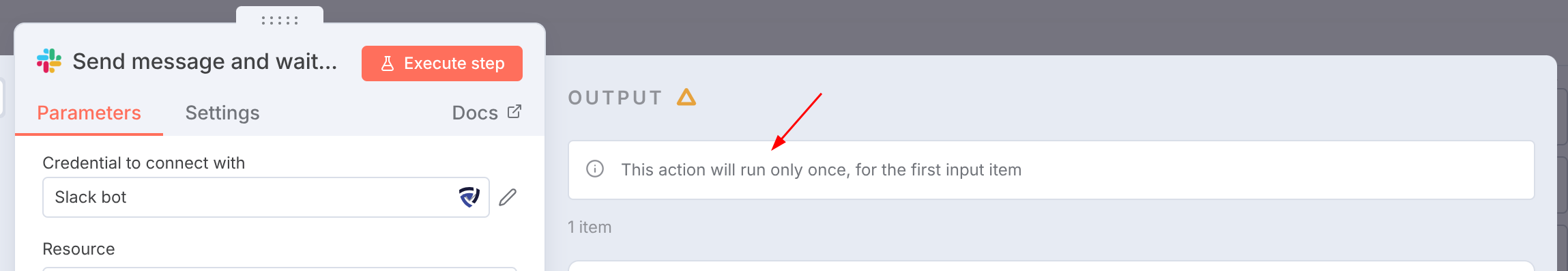 On the Output section, there is a notice: ”This action will run only once, for the first input item”. I did not check the run only once.