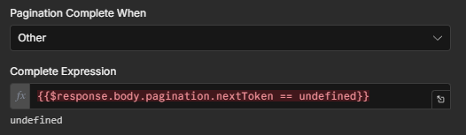 I am trying to fetch Amazon SKU off my seller account, AMAZON SP-API CATALOG PAGINATION using the documentation, and also taking idea from this stack overflow Solution however the workflow keeps looping till infinite until I deliberately stop it, and still I get no output, I have attached my workflow below, also we will not get the “nextToken” until the request is fetch once, without “nextToken” we can’t pass to “PageToken”