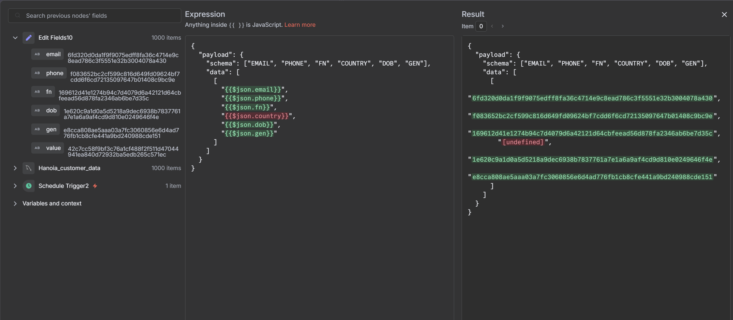 { "body": { "payload": { "schema": [ "EMAIL", "PHONE", "FN", "COUNTRY", "DOB", "GEN" ], "data": [ [ "6fd320d0da1f9f9075edff8fa36c4714e9c8ead786c3f5551e32b3004078a430", "f083652bc2cf599c816d649fd09624bf7cdd6f6cd72135097647b01408c9bc9e", "169612d41e1274b94c7d4079d6a42121d64cbfeead56d878fa2346ab6be7d35c", "", "1e620c9a1d0a5d5218a9dec6938b7837761a7e1a6a9af4cd9d810e0249646f4e", "e8cca808ae5aaa03a7fc3060856e6d4ad776fb1cb8cfe441a9bd240988cde151" ] ] } }, "headers": { "accept": "application/json,text/html,application/xhtml+xml,application/xml,text/*;q=0.9, image/*;q=0.8, */*;q=0.7" }, "method": "POST", "uri": "https://graph.facebook.com/v23.0/120208312705480177/users", "gzip": true, "rejectUnauthorized": true, "followRedirect": true, "resolveWithFullResponse": true, "followAllRedirects": true, "timeout": 300000, "encoding": null, "json": false, "useStream": true, "qs": { "access_token": "**hidden**" } }