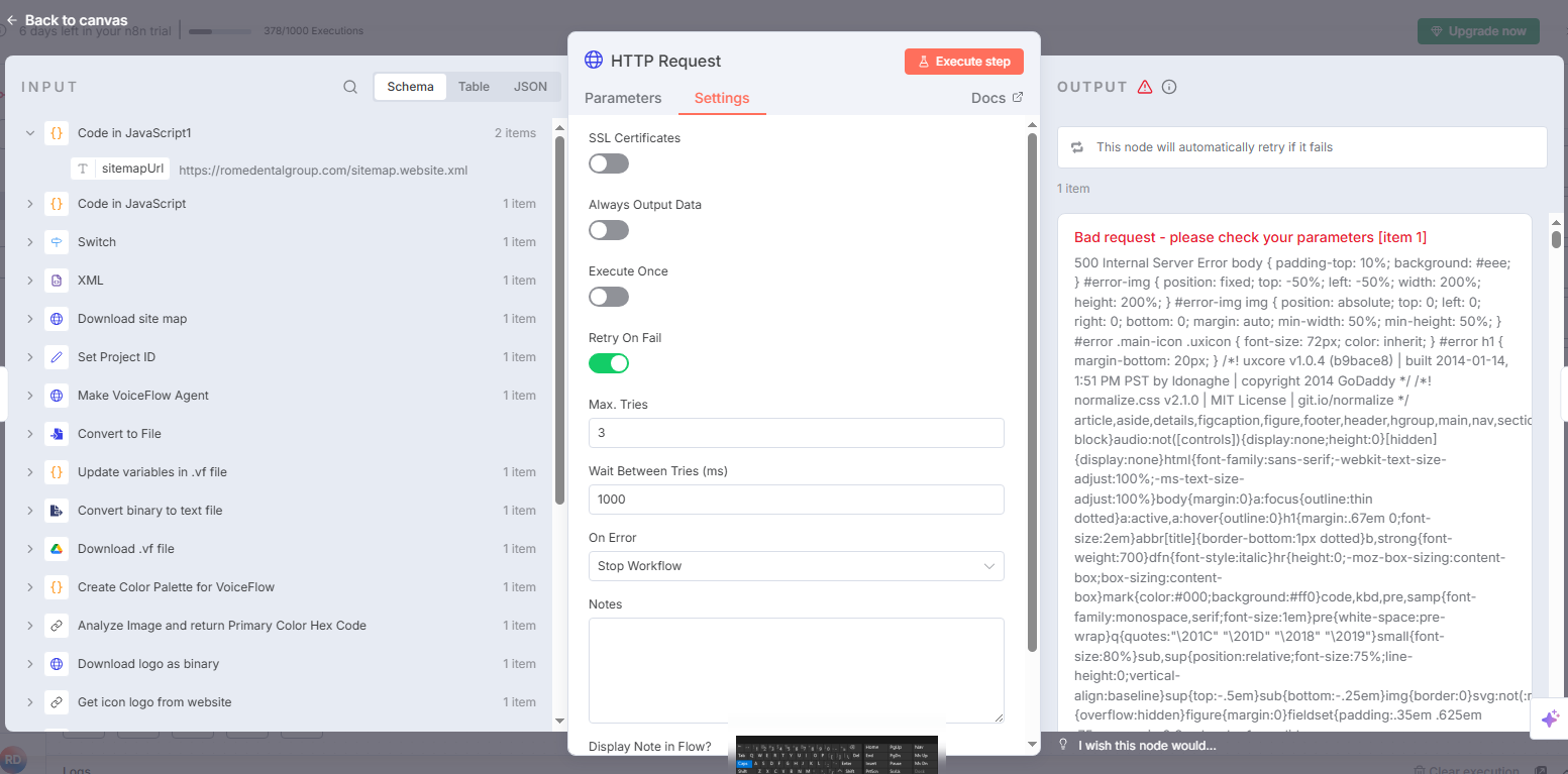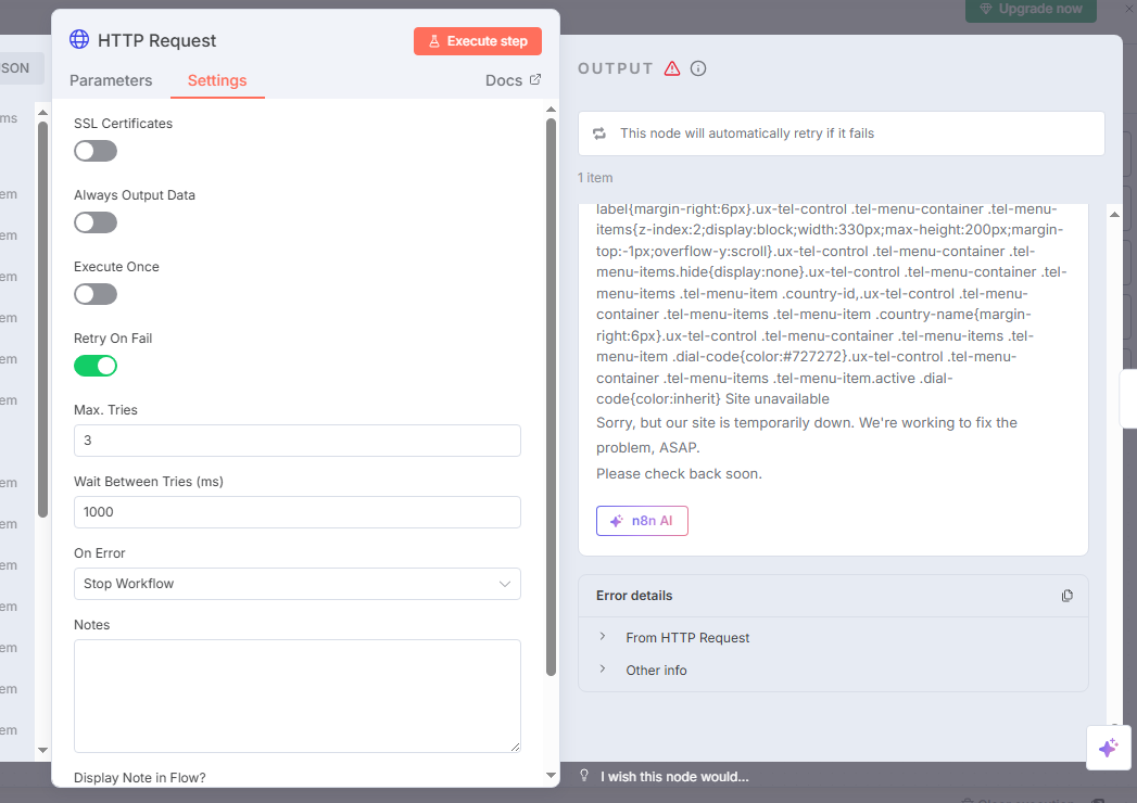 I am pinging a URL using HTTP Request node, and the return I get is a 500 error. However, when I ping the URL myself using browser it works? And yes I’m able to reproduce the error many times for same URL