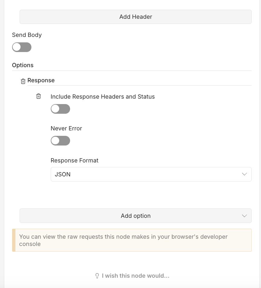 Manually visiting the resolved URL in a browser (or curling) with the same token, returns a clean JSON array immediately: [“https://link1.com”, “https://link2.com”].