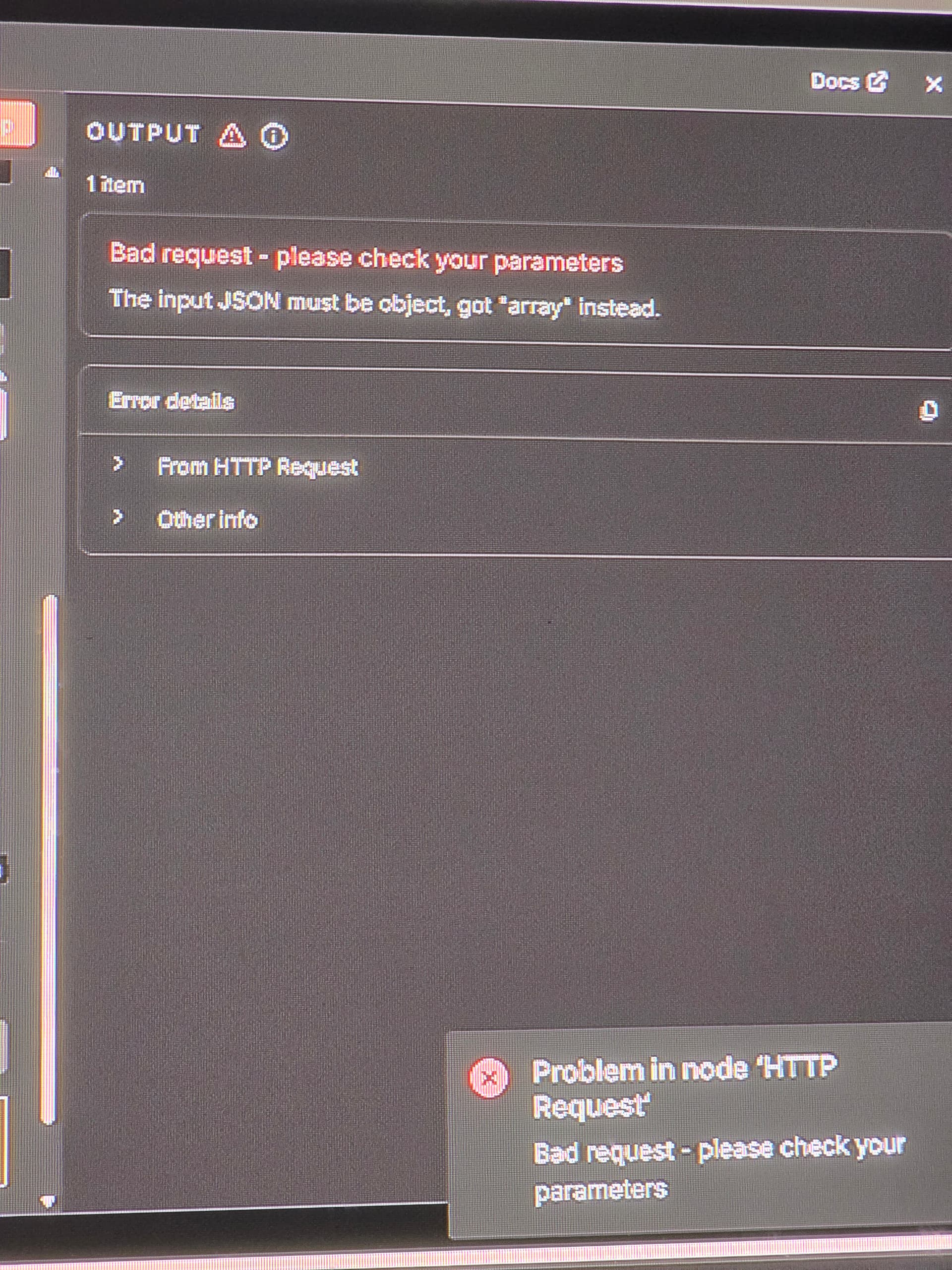 basically i am trying top do a POST in the HTTP Request and it backing me to that error that the jason has an “array” and therefore i cannot move forward