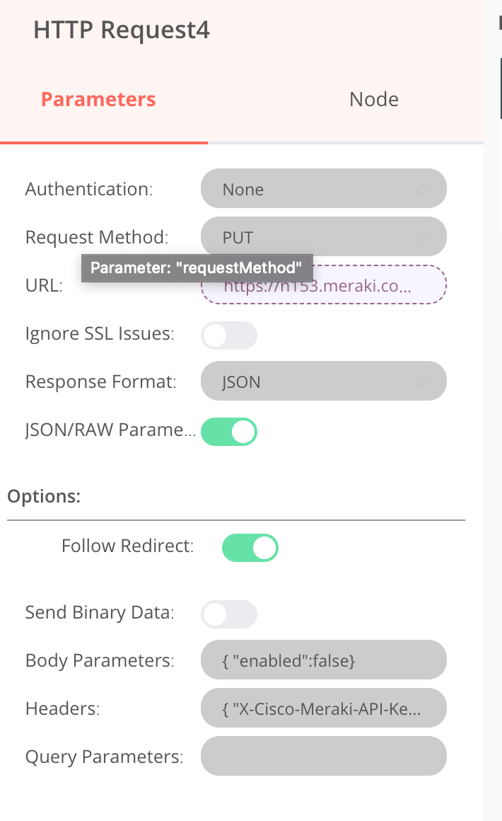 I’m having difficulty using HTTP request with a PUT passing a boolean as an argument via RAW/CUSTOM