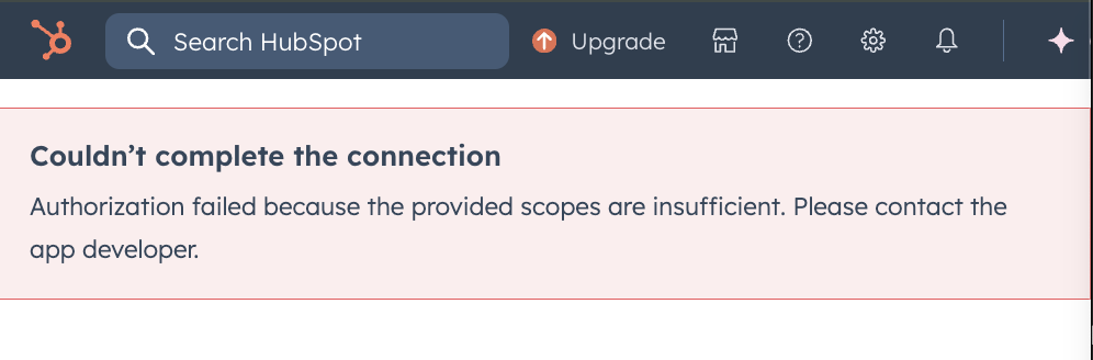 I created a HubSpot developer account and entered all the required information, including the 14 scopes listed here: