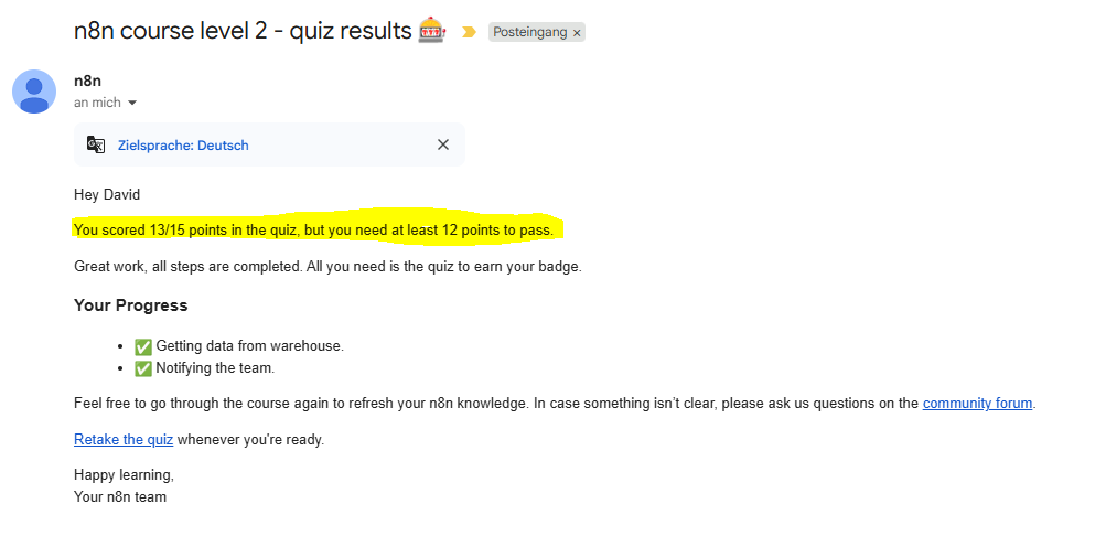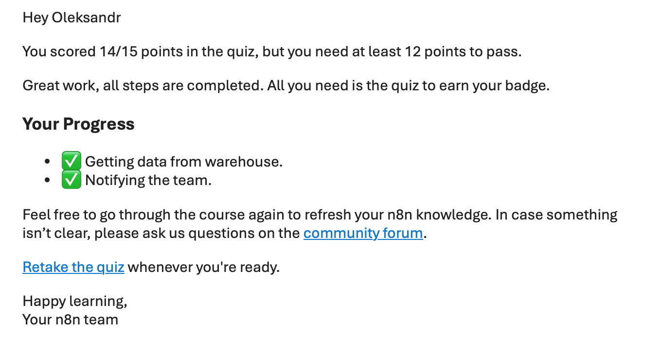 Hello @jamiemadden_n8n I have completed the course level 2 but did not receive the badge, could you please check? Thank you in advance.