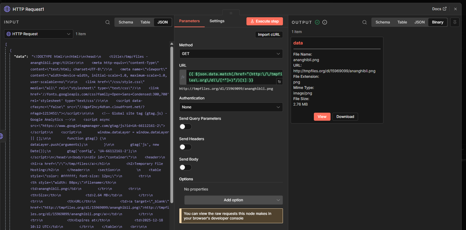 {{ $json.data.match(/href="(http:\/\/tmpfiles\.org\/dl\/[^"]+)"/)[1] }}