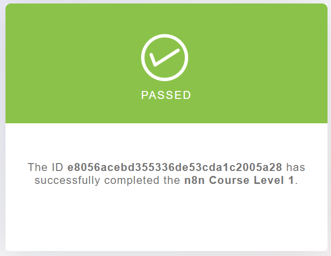 I have successfully completed the n8n Level 1 course by passing both quiz sections, but the system still shows the course as incomplete and I haven’t received my badge.