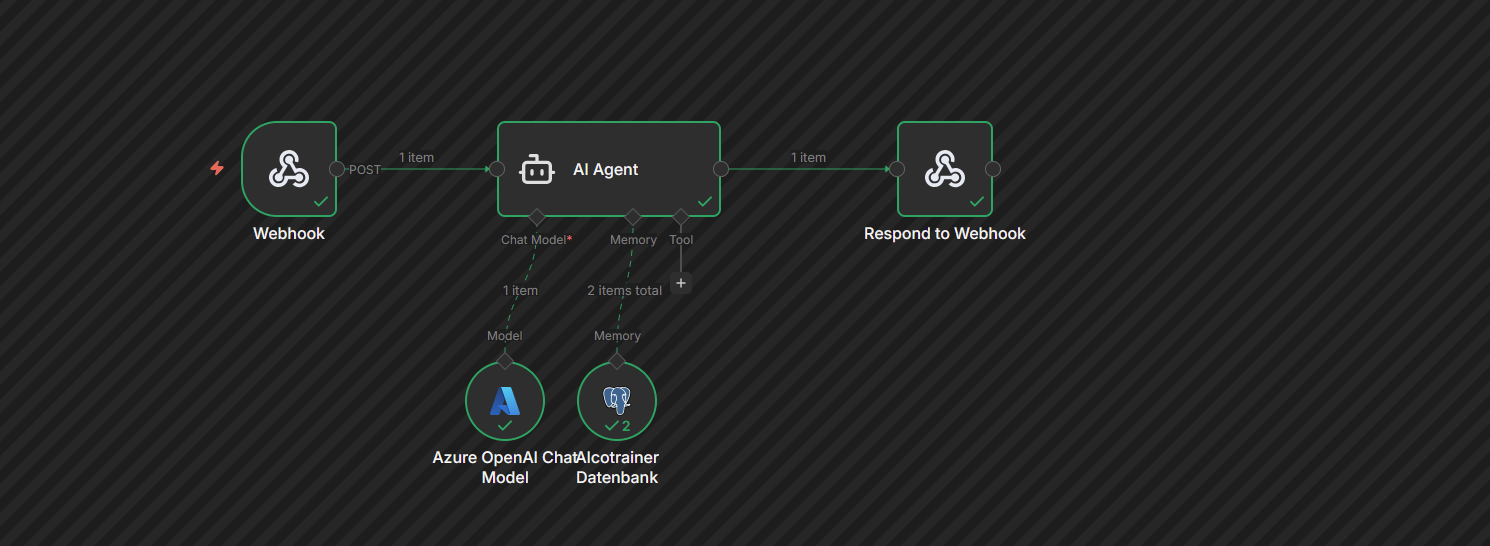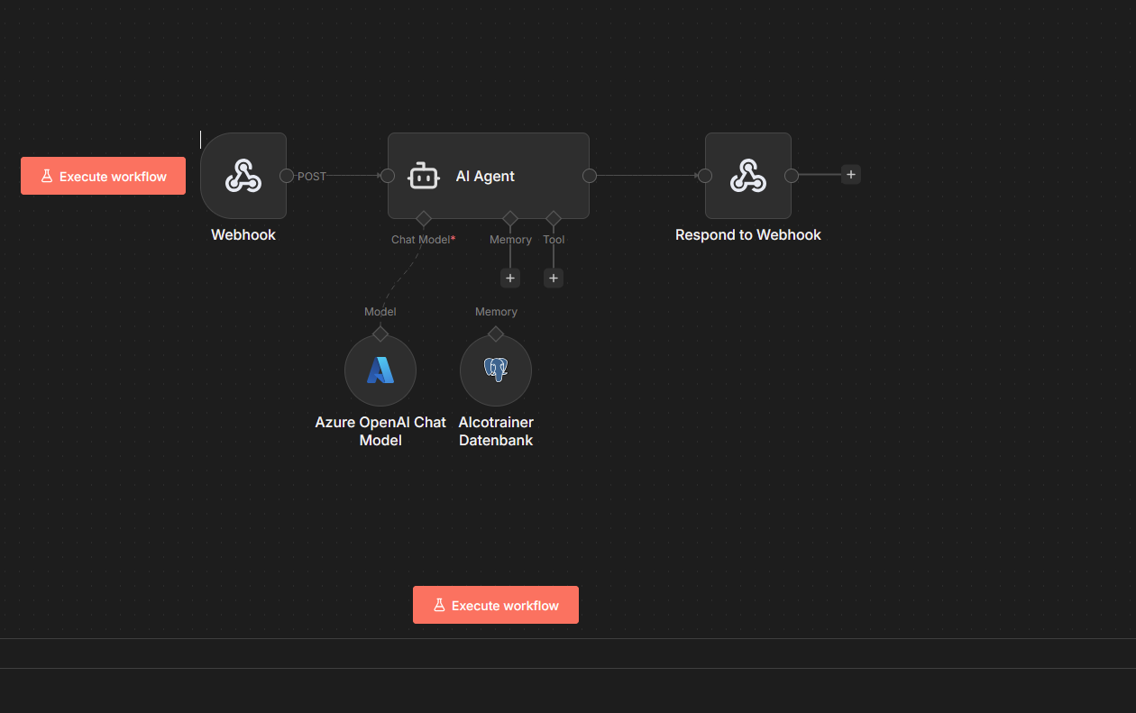 What i have understood is that you are trying to call a URL which is of this workflow which takes webhook given parameter as input and it gives it to AI agent and return back the output which i guess you are trying to display inside your Main.py, for now let’s consider a basic workflow which is very similar to this one which is: