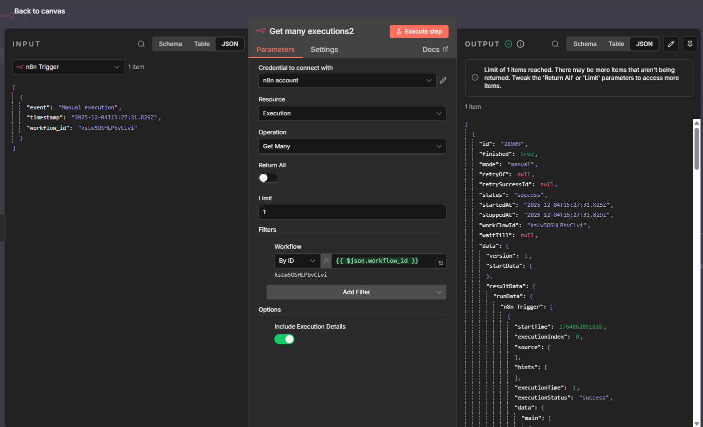Success\n Output:\n - event: “Manual execution”\n - timestamp: “2025-12-04T14:56:19.746Z”\n - workflow_id: “jviZsgdWHvsiwlVe”\n\n”