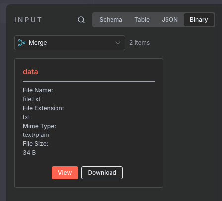 Binary data holds files that move across the execution locally. And that file is shown in a different menu (refer to image)