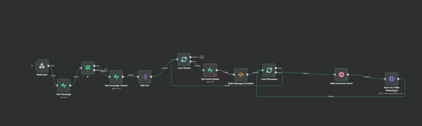 but man after the inner loop finishing which is “loop message“ this node is sendeing the data to the