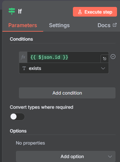 I also tried the other way around. The check is done on the first field “id”, if that exists. But if the IF doesn’t find it it proceeds the same way as with the current implementation.