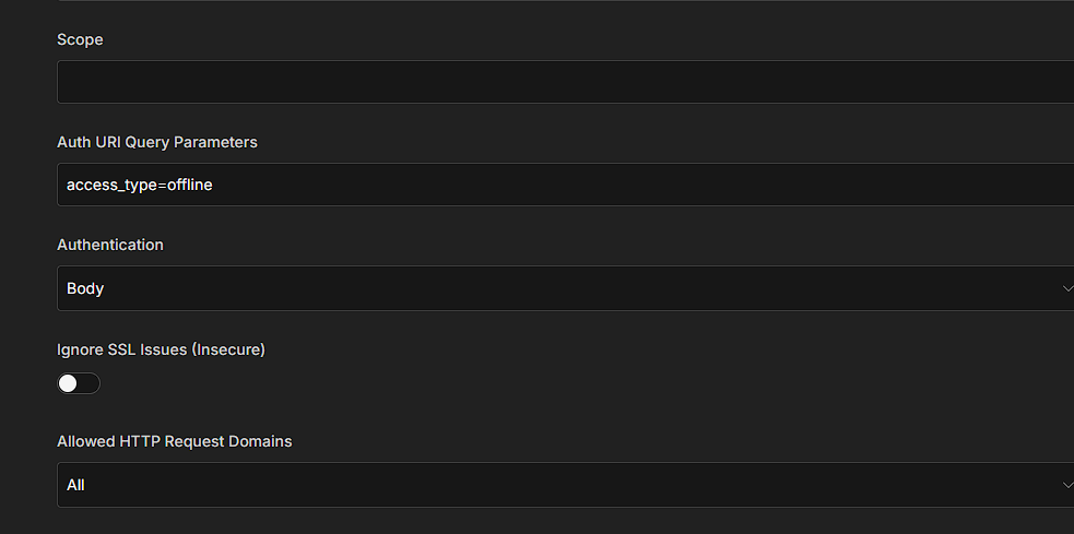 First, verify if the refresh_token actually exists. After connecting the OAuth2 credential, go to Credentials, then Generic OAuth2, reauthorize the app, and check if the saved data contains something like "refresh_token": "xxxx". If there’s no refresh_token, n8n is working correctly and the problem is that Teamleader isn’t delivering a refresh token. Second, adjust the authorization parameters if applicable. In the Generic OAuth2 Credential under Auth URI Query Parameters, try including access_type=offline and prompt=consent. Keep in mind these parameters aren’t universal and only work if Teamleader supports something equivalent. After that, reconnect the credential and don’t reuse old tokens.