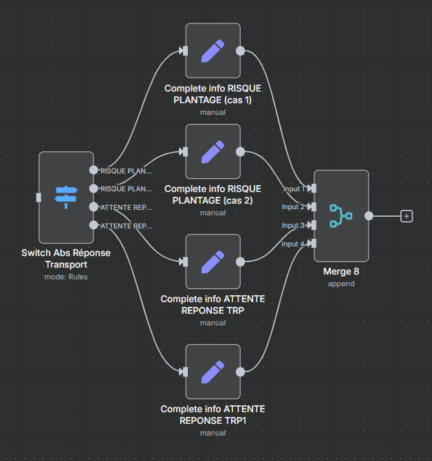 Hi, in my workflow, I need to add information to certain redundant fields depending on the value of a field. I would like to know if there’s an easy way to do this using only one node that contains all the cases and the fields to fill in as JSON.