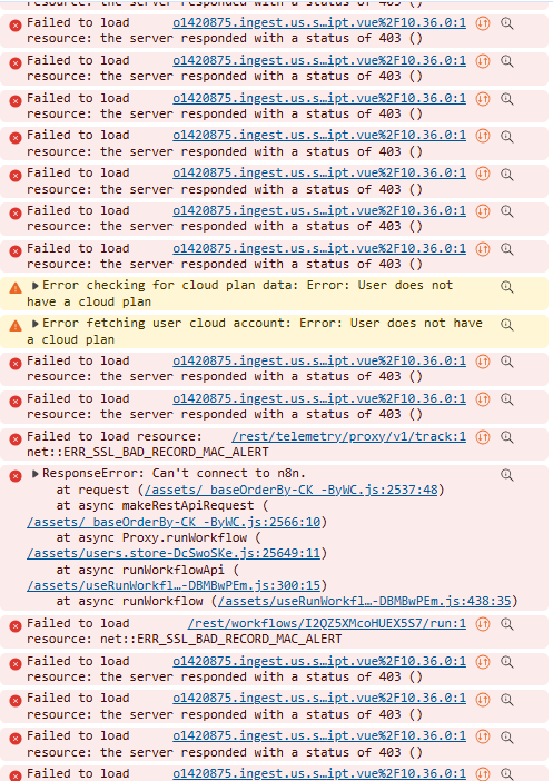 I get hundreds of these errors when I’m using n8n on pretty much any workflow. Do you all see the same volume of errors in your console logs? The workflow works in many cases despite all of these errors. Sometimes I have to refresh or restart the instance to get it to work.